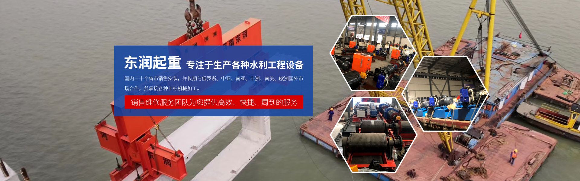河南東潤起重設(shè)備有限公司始建于1992年,公司位于河南省起重工業(yè)園區(qū),交通便利,環(huán)境優(yōu)美,借得天獨厚的地理位置,和過硬的產(chǎn)品質(zhì)量,迅速成長壯大,具實力的水利工程、起重配件生產(chǎn)安裝于一體的生產(chǎn)廠商。  東潤起重以中國水利工程為依托,專注于生產(chǎn)各種水利工程設(shè)備,公司卷揚機、啟閉機等水工設(shè)備遠(yuǎn)銷海內(nèi)外,國內(nèi)三十個省市銷售安裝,并長期與俄羅斯、中亞、南亞、非洲、南美、歐洲國外市場合作,幷承接各種非標(biāo)機......... 查看更多>>